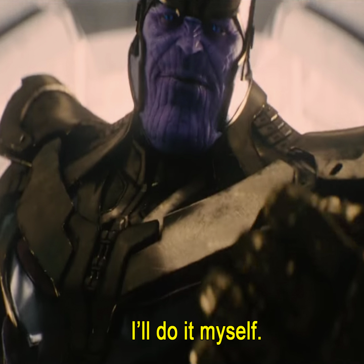 13. And when Bruce Banner can't conjure out The Hulk, he says, "I'll do it myself," just like Thanos said in the Avengers: Age of Ultron post-credit scene.